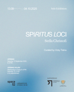 Alongside the Spiritus Loci exhibition, Space52 will present work by Stella Christofi at Art Athina (September 18-22) at the Zappeion Megaron, as part of the Home is Me exhibition.